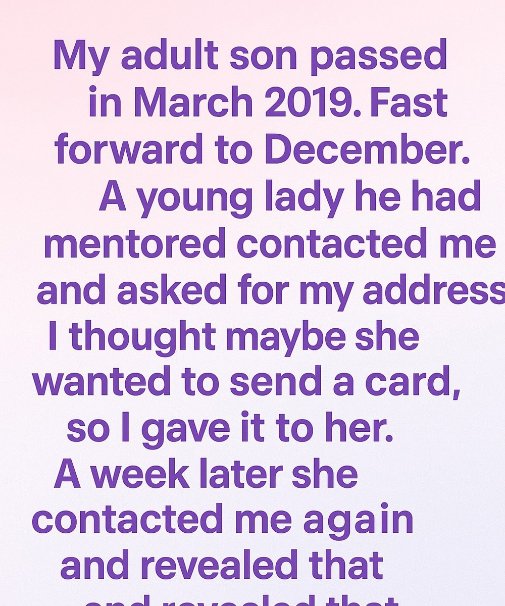 A young woman reached out. She said my son had once mentored her. She asked for my address, and I assumed she wanted to send a card. I didn’t think much of it.