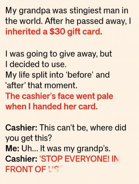 The cashier could barely contain her excitement as she told the customer that the gift card in her hand wasn’t ordinary at all. It was a rare promotional card from years ago—one that carried an unclaimed one-million-dollar prize. I froze, unable to process her words, as the store manager hurried over to verify it.