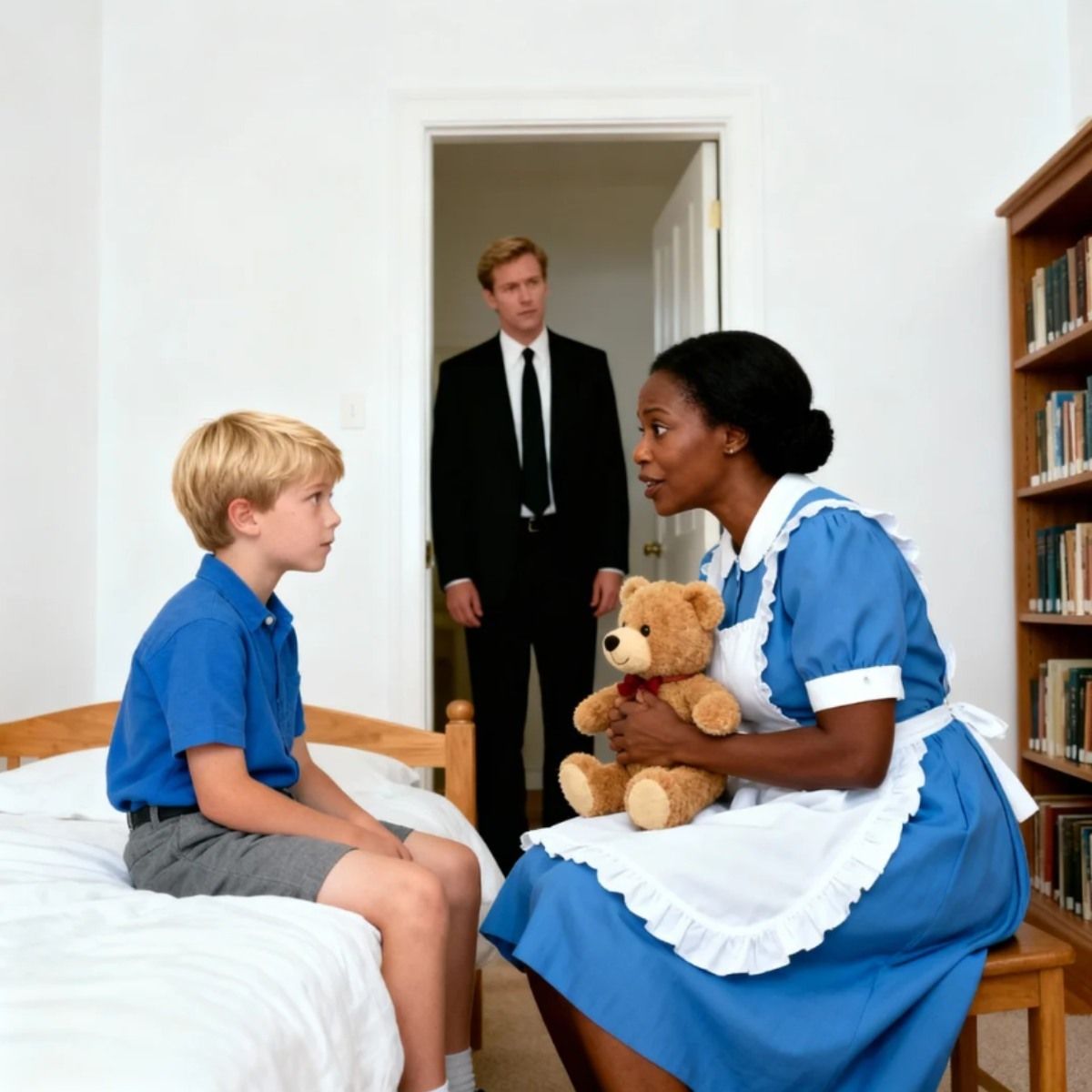 The Kler mansion was silent and cold, run with the same precision Jonathan Kler used for his business. Since his wife’s death, he buried himself in work, visiting his sick son Oliver only through hired nurses and doctors. Oliver, weak and bedridden with a rare neurological disease, barely reacted to anything—until Grace arrived. She was hired only to clean, yet Oliver began smiling, eating, even humming. Jonathan noticed the change and, suspicious, checked the hallway cameras.